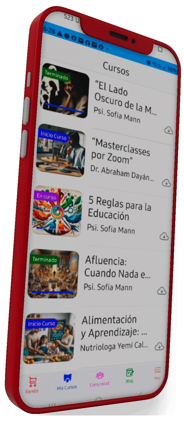 – Acceso a la app móvil en tu celular para consultar en cualquier momento y lugar todos los cursos las 24 horas del día, los 365 días del año