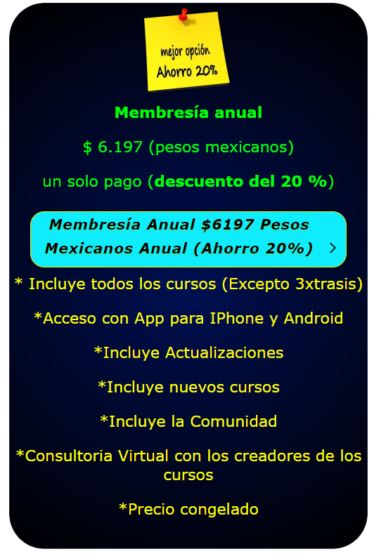 P.D.(8): una vez elijas el plan que más te convenga (mensual o anual) tendrás acceso a nuestra biblioteca de cursos, disponibles para ti 24/7/365, sin restricciones